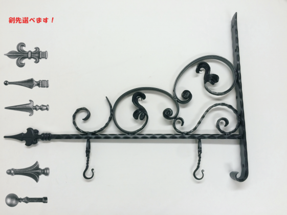 看板(突出し看板) を吊るすためのアームには古くからロートアイアンがよく使われてきました。