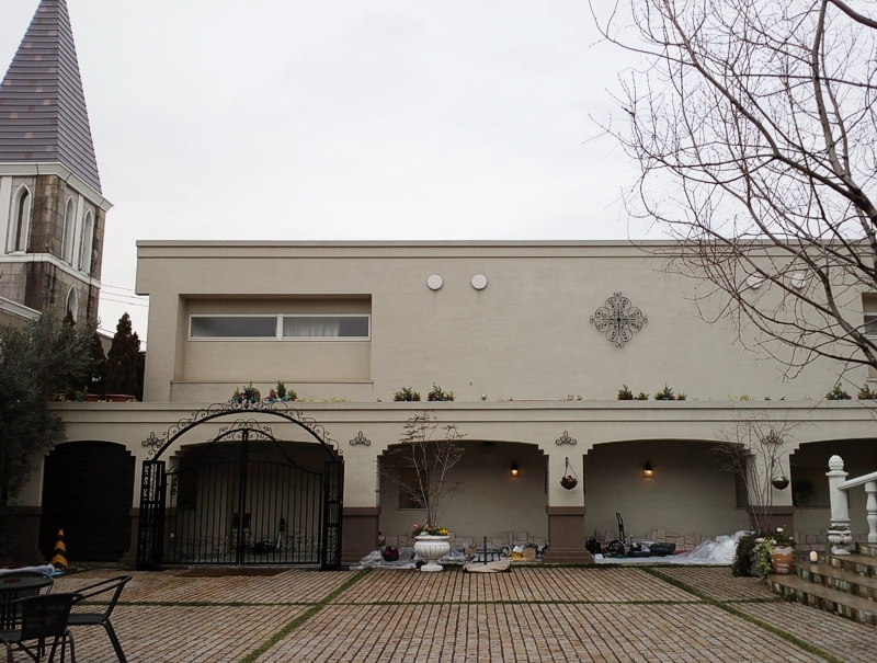 AB03 門扉、アーチ、装飾パネル 概要: 結婚式場のロートアイアンです。壁面や柱に唐草パネルをパーツのまま張り付けるデコレーションがユニークです。 施主: パールベリーガーデン 所在地: 静岡県富士市 鍛鉄デザイン: レッキーメタルオーナメント北京 製作協力: 川内工業 鍛鉄監理: レージェンシー 回廊の出入口にアーチと門扉。柱や壁に唐草パネル装飾