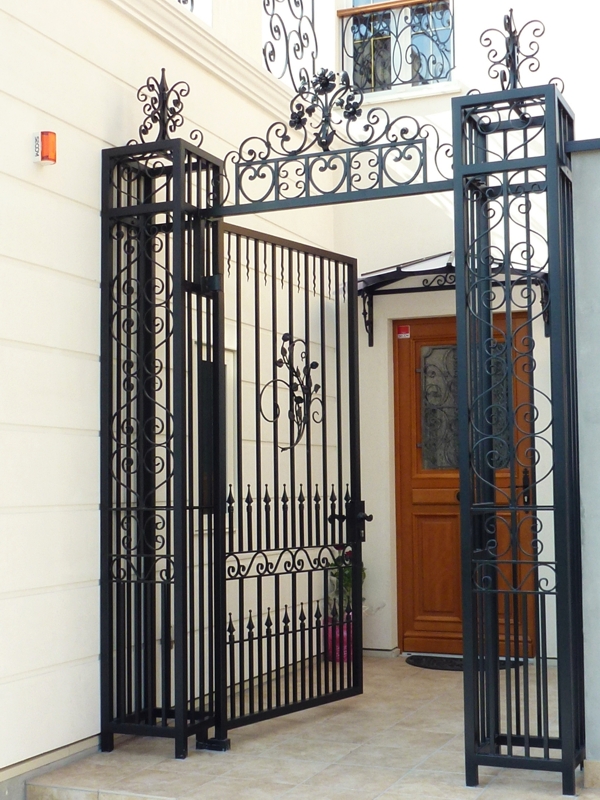 【概要】コンクリート下地にアンカー止めで建てこみました。この後タイルで仕上がります 【仕様】レッキーメタルのロートアイアンパーツと国内鋼材を加工溶接組立。溶融亜鉛メッキ防錆後黒半ツヤ塗装仕上。 【寸法】門柱・アーチ=3,050H X 2,000W X 400D 扉=2,100H X 1,100W 218.11.216(唐草パネル) 441.20.042(唐草) 204.20.024(唐草) 442.20.042(唐草) 060.05.000(剣先) 442.20.042(唐草) 444.20.042(唐草) 005.20.042(唐草) 323.21.013(剣先) 971.88.000(植物パネル) 090.05.000(剣先) 323.02.000(レバーハンドル) アイテムサムネイル