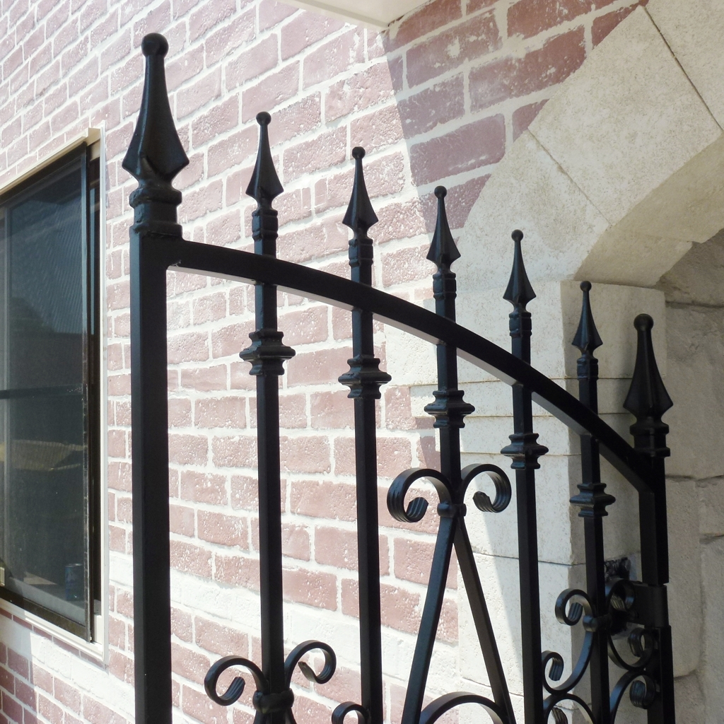 【概要】ファサード入口庇上のフェンス状装飾です。 【仕様】レッキーメタルのロートアイアンパーツと国内鋼材を加工溶接組立。溶融亜鉛メッキ、黒半ツヤ塗装仕上。 【寸法】300H X (1,100+2,200+1,100)W 059.05.000(剣先) 442.20.042(唐草) アイテムサムネイル