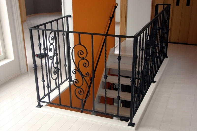 AJ13 階段手摺、ロク手摺 概要: 住宅の階段まわりの手摺類です。ホームページをご覧になったお客様からご注文いただきました。 施主: K様邸 所在地: 埼玉県川口市 鍛鉄デザイン: レッキーメタルオーナメントジャパン、レッキーメタルオーナメント北京 製作: レッキーメタルオーナメント北京 1Fホールから2Fへ昇る階段手摺