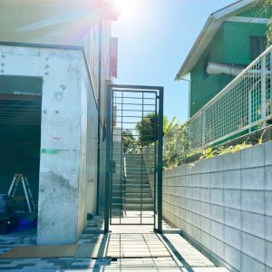 - 概要: 住宅通用門扉。塀積み前に扉枠を取付けました。